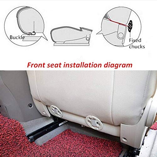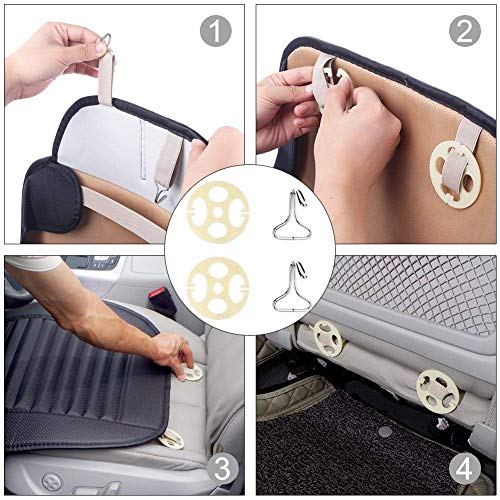Anti-slip design: vrij cadeau voor een paar metalen gespen (ophangvoorziening onder de autostoel) en plastic vaste klemvoering (gevangen in de achterzijde), stevig en duurzaam, voorkomt dat de autostoelhoes van je autobestuurdersstoel valt.