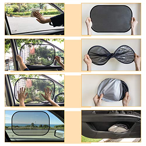 Eenvoudige installatie: Deze parasols hechten zich aan uw ramen zonder lijm, zuignappen of lijm; Reinig en droog de binnenkant van het raam met de meegeleverde reinigingsdoek, plaats dan de zonnescherm op uw raam, loop je hand eroverheen, en je bent klaar om te gaan!