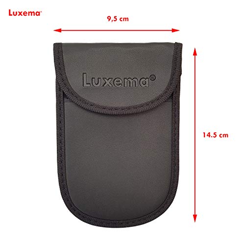 Deze sleutelhoes is geschikt voor alle draadloze autosleutels. Tevens kan het worden gebruikt om uw bankpasjes te beschermen tegen draadloos Skimmen. Eventueel kunnen de hoezen ook voor het blokkeren van telefoons-signalen worden gebruikt, maar check dan eerst de maat van de telefoon of deze past. Kwalitatief met de hand vervaardigd ontwerp. Gemaakt van hoogwaardig zwart kunstleder en een signaalblokkerende binnenvoering. Sluiting door middel van klittenband.