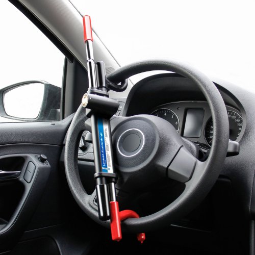 CARTREND stuurwiel-afsluitstang • blokkeersysteem voor elk gangbare stuurwiel • snelle en probleemloze montage en demontage • gehard stalen staven in zware uitvoering • Hoogwaardig veiligheids-kruisslot • ruimtebesparende opslag • veiligheid bij vakanties • De politie adviseert extra stuursloten