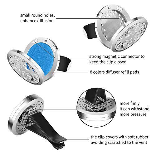【Multi-Application】– Voeg een paar druppels van uw favoriete essentiële olie toe aan de pads, plaats de essentiële oliediffuser in de auto, kamer, kantoor of andere geschikte plaatsen om de lucht fris te houden en ongewenste geuren te elimineren, maak je ontspannen en breng je een goed humeur.