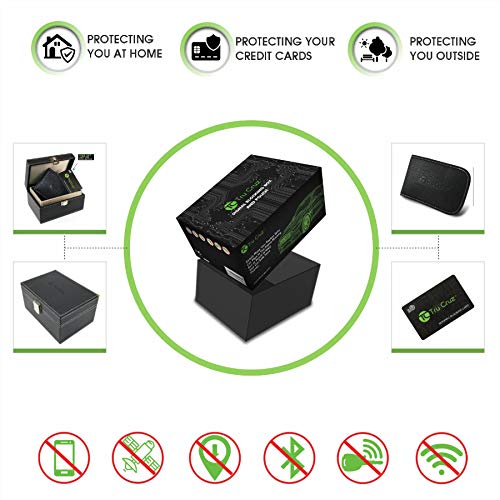 WE’VE GOT YOU COVERED! Imagine waking up to see your car has disappeared from the driveway or supermarket car park or checking your bank account to see your accounts have been wiped out? That’s why at Tru Cruz we leave no stone unturned to ensure our car accessories are the best on the market. See for yourself and test them when they arrive by placing your Key in the box or pouch and seeing if you can open your car. Place the RFID signal blocking card in the center of your purse or wallet to stop thieves from cloning your cards. SPECIFICATIONS: Signal Blocking Box External dimensions Length 17cm/6.69 inches Height 9cm/3.54 inches Width 12cm/4.72 inches Internal dimensions Length 14cm/5.51 inches Height 7cm/2.76 inches Width 9cm/3.54 inches Black PU leather/light grey stitching and silver lock Signal blocking material Black soft lining MDF wood structure Signal Blocking Pouch Length 14cm/5.51 inches Width 9cm/3.54 inches Black PU leather / Light grey stitching Signal blocking material Velcro