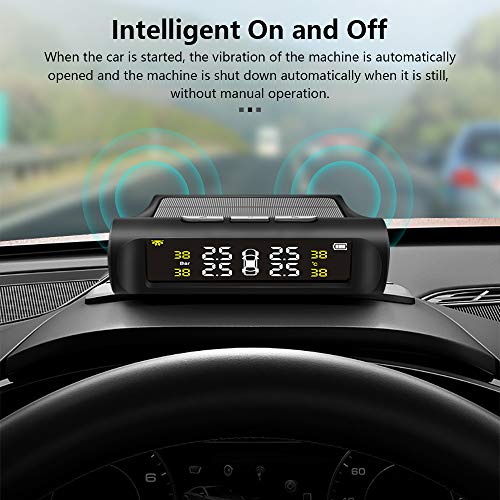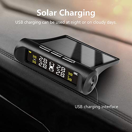 ►Zonne-energie en USB oplaadbaar – Bewaking voor alle weersomstandigheden, bandenspanning kan worden opgeladen door zonne-energie wanneer het zonnig is, bandenspanningscontrolesysteem kan ook worden opgeladen via USB-kabel wanneer het regent op een bewolkte dag. Bandenspanningsmeter is erg handig en energiebesparend.