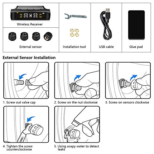 ►Eenvoudige installatie en veel gebruikt – U kunt eenvoudig 4 sensoren in minuten installeren zonder extra gereedschap (een kleine sleutel is inbegrepen in het pakket). Dit TPMS-bandenspanningscontrolesysteem is geschikt voor een bandenspanning van minder dan 4,3 bar, zoals sedans, SUV , MPV en etc.