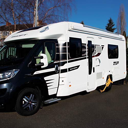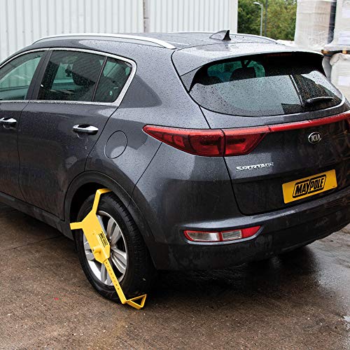De Maypole Heavy Duty wielklem is geschikt voor het immobiliseren van auto’s, bestelwagens, caravans, aanhangwagens en campers. Deze hoge veiligheid pick-resistente sluiting is binnen enkele seconden uitgerust met een rubberen pad om schade aan het wiel te voorkomen. Geschikt voor wielen van 10 tot 16 inch met bandbreedtes tussen 135 en 215 mm. Bijzonderheden: geschikt voor wielen van 10 tot 16 inch met bandbreedte tussen 135 en 215 mm. Zonder bandenspanning te verwijderen. Zeer zichtbare afschrikking. Geleverde drie sleutels. Twee beveiligingsschijven voor verschillende bandbreedtes, stof-, water- en corrosiebestendig. Beveiligingsplaat voorkomt de toegang tot wielmoeren.