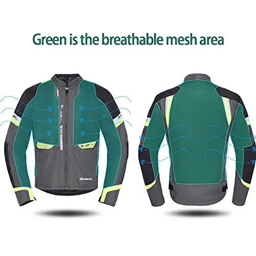 Verwijderbare voering: het motorfietsjack is ontworpen met een verwijderbare innerlijke voering en waterdicht, waardoor deze jas geschikt is voor alle seizoenen.