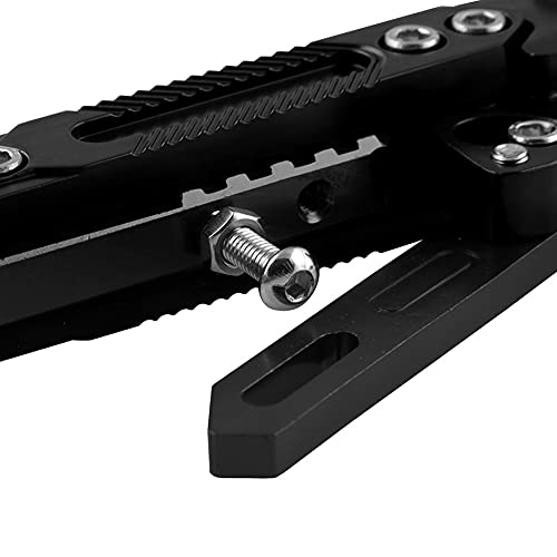 De hoogte van deze universele motorsteun kan worden versteld, eenvoudig te gebruiken. Het aangepaste anti-slip ontwerp, heeft een stabiele prestaties en een lange levensduur. Dit motorlegering statief is gemaakt van CNC aluminiumlegering, die slijtvastheid en corrosiebestendigheid heeft.En het kan ervoor zorgen dat de motorfiets veilig staat.