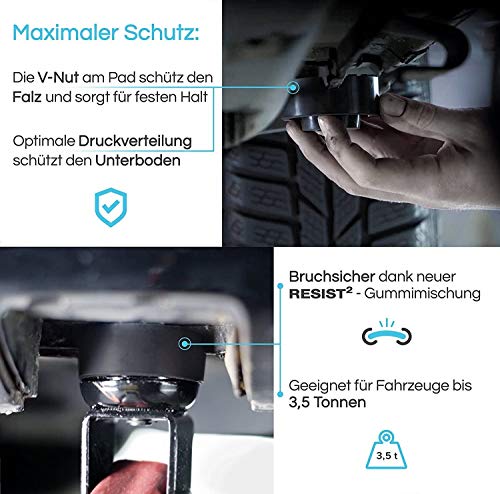 Eenvoudig in gebruik: de powerpad is perfect geschikt voor verschillende carrosserieën en krikken (bijvoorbeeld Unitec, Michelin, etc.) De toepassing is snel, eenvoudig, slipvast en perfect passend! “Hoe aangesloten”.