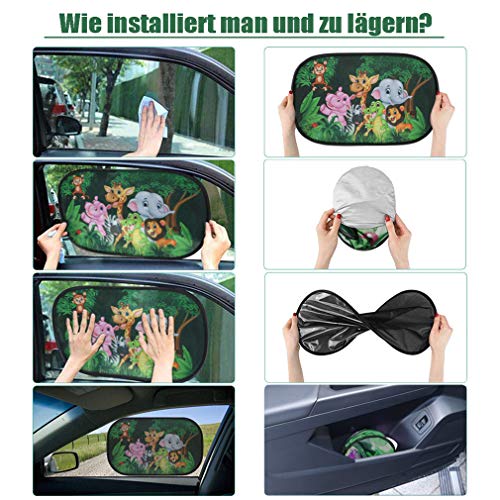 🍀Eenvoudig te installeren: onze zonneschermen zijn zelfklevend, zonder storende lijm of zuignappen. Met hoogwaardige zelfklevende folie zorgt de folie voor een betere pasvorm aan de zij- of achterruit en zo vaak zonder resten te verwijderen. Eenvoudig te installeren en te verwijderen dan anderen!