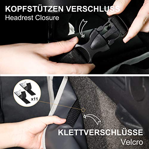 Snelle en stabiele installatie – 11 haak- en lusriemen en 2 kliksluitingen op de hoofdsteunen voor een stabiele bevestiging. De kofferbakbescherming kan eenvoudig binnen een minuut worden geïnstalleerd en verwijderd.