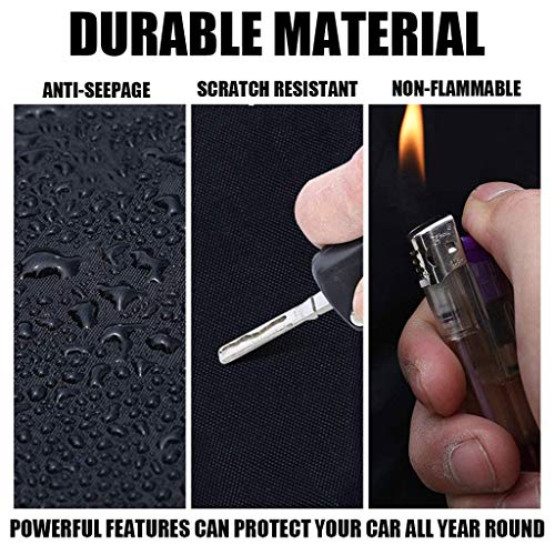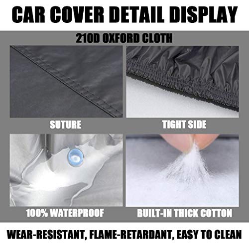 [Premium materiaal] De autohoes is gemaakt van 210D Oxford-stof en het oppervlak is waterdicht. Het kan 100% waterdicht zijn zonder enige penetratie. Het sterk reflecterende materiaal heeft een goede zonwering en UV-bestendigheid, wat ervoor kan zorgen dat de auto koel blijft in hete zomers. Dikke watten beschermen de autolak en zijn duurzamer.