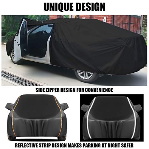 [Uniek ontwerp] Het ontwerp van de omringende reflecterende strips verbetert de veiligheid van parkeren ’s nachts. De onderkant van de auto is winddicht uitgevoerd. Het ontwerp met ritssluiting aan de zijkant maakt het handiger in gebruik. Het materiaal van de autohoes is glad en delicaat en krast niet op de lak! Opbergtas, handig opbergen, mooie spiegelmond, etc.