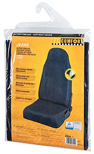 Autostoelhoes jeans blauw voor één voorstoel, slipcover universele pasvorm, autostoelhoes 47024